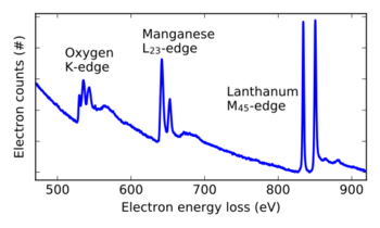 - ↑ Riedl, T.; T. Gemming; W. Gruner; J. Acker; K. Wetzig (April 2007). "Determination of manganese valency in La1−xSrxMnO3 using ELNES in the (S)TEM". Micron 38 (3): 224–230. doi:10.1016/j.micron.2006.06.017. PMID 16962785.