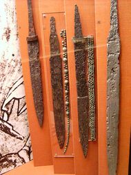 Seax (Template:IPA-ang; also sax, sæx, sex; invariant in plural, latinized sachsum) is an Old English word for "knife".[1] In modern archaeology, the term seax is used specifically for a type of small sword, knife or dagger typical of the Germanic peoples of the Migration Period and the Early Middle Ages, especially the Saxons. These vary considerably in size.