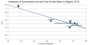 About 222 million women who want to avoid pregnancy in developing countries are not using a modern birth control method.[15][16] Birth control use in developing countries has decreased the number of deaths during or around the time of pregnancy by 40% (about 270,000 deaths prevented in 2008) and could prevent 70% if the full demand for birth control were met.[17][18] By lengthening the time between pregnancies, birth control can improve adult women's delivery outcomes and the survival of their children.[17] In the developing world, women's earnings, assets, and weight, as well as their children's schooling and health, all improve with greater access to birth control.[19] Birth control increases economic growth because of fewer dependent children, more women participating in the workforce, and less use of scarce resources.[19][20]
