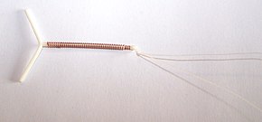 The current intrauterine devices (IUD) are small devices, often 'T'-shaped, containing either copper or levonorgestrel, which are inserted into the uterus. They are one form of long-acting reversible contraception which are the most effective types of reversible birth control.[61] Failure rates with the copper IUD is about 0.8% while the levonorgestrel IUD has a failure rates of 0.2% in the first year of use.[62] Among types of birth control, they, along with birth control implants, result in the greatest satisfaction among users.[63] As of 2007, IUDs are the most widely used form of reversible contraception, with more than 180 million users worldwide.[64]