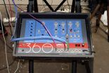 The GK drivers or compatible controllers are connected to a dedicated synthesizer module like Roland GR-1 or Roland GR-55 via a cable with 13-pin connectors. The module sits on the floor and has the appearance of a large effects unit, with footswitches for the selection of sounds and memory banks.