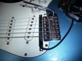 Rock Band 3 (2010) featured three guitar controllers. One was modeled after the Fender Mustang, with six string sensors stretching from the bridge to the location of the neck pickup of a standard guitar, and 102 buttons in 6 columns of 17 frets, which together create MIDI note data. A second was built with Fender as a fully functional guitar, with a bridge pickup "listening" to the strings and sending MIDI information to the MIDI port.