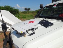 These usually come in the shape of a self-contained flat rectangular box that needs to be pointed in the general direction of the satellite—unlike VSAT the alignment need not be very precise and the modems have built in signal strength meters to help the user align the device properly. The modems have commonly used connectors such as Ethernet or Universal Serial Bus (USB). Some also have an integrated Bluetooth transceiver and double as a satellite phone. The modems also tend to have their own batteries so they can be connected to a laptop without draining its battery. The most common such system is INMARSAT's BGAN—these terminals are about the size of a briefcase and have near-symmetric connection speeds of around 350–500 kbit/s. Smaller modems exist like those offered by Thuraya but only connect at 444 kbit/s in a limited coverage area. INMARSAT now offer the IsatHub, a paperback book sized satellite modem working in conjunction with the users mobile phone and other devices. The cost has been reduced to $3 per MB and the device itself is on sale for about $1300.[48]