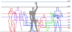 It was developed as a visual bridge between two incompatible scales, the Imperial and the metric systems. It is based on the height of a man with his arm raised. The Modulor deemed the standard human height to be 1.83 m (6 ft 0 in), excluding feminine measures. The dimensions were refined with overall height of raised arm set at 2.26 m (7 ft 5 in).