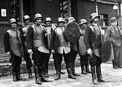 The first squad trained in modern techniques of riot control in Asia was formed in 1925 in colonial Shanghai as a response to the mismanaged riot of the May Thirtieth Movement.