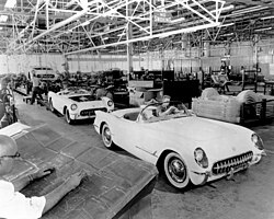 In 1953, GM executives accepted a suggestion by Myron Scott, then the assistant director of the Public Relations department, to name the company's new sports car after the corvette, a small maneuverable warship.[8] The first model, a convertible, was introduced at the 1953 GM Motorama as a concept car; production models went on sale later that year. In 1963, the second generation was introduced in coupe and convertible styles. Originally manufactured in Flint, Michigan, and St. Louis, Missouri, the Corvette has been produced in Bowling Green, Kentucky, since 1981, which is also the location of the National Corvette Museum.
