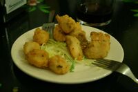 The meat of the school shark is consumed in Andalusian cuisine, where it is usually known as cazón. Among recipes are the traditional cazón en adobo in the mainland, and tollos in the Canary Islands. In Mexican cuisine, the term cazón refers to other species, and is prepared similarly. In the United Kingdom, the flesh is sometimes used in "fish and chips" as a substitute for the more usual cod or haddock.[9] In Greek cuisine, it is known as galéos (γαλέος) and is usually served with skordalia (σκορδαλιά), a dip made of mashed potatoes or wet white bread, with mashed garlic and olive oil.