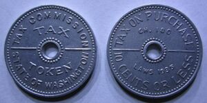 Sales tax tokens are fractional cent devices that were used to pay sales tax on very small purchases in many American states during the years of the Great Depression. They were created as a means for consumers to avoid being "overcharged" by having to pay a full penny tax on purchases of 5 or 10 cents. Issued by private firms, by municipalities, and by twelve state governments, sales tax tokens were generally issued in multiples of 1 mill (1⁄10 cent).[1]