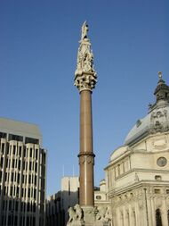 Elizabeth I appointed William Camden[22] as Head Master, and he is the only layman known to have held the position until 1937.[23] It was Richard Busby,[24][25] himself an Old Westminster, who established the reputation of the school for several hundred years, as much by his classical learning as for his ruthless discipline by the birch, immortalised in Pope's Dunciad. Busby prayed publicly up School[26] for the safety of the Crown, on the very day of Charles I's execution, and then locked the boys inside to prevent their going to watch the spectacle a few hundred yards away. Regardless of politics, he thrashed Royalist and Puritan boys alike without fear or favour. Busby also took part in Oliver Cromwell's funeral procession in 1658, when a Westminster schoolboy, Robert Uvedale, succeeded in snatching the "Majesty Scutcheon" (white satin banner) draped on the coffin, which is now held in the library[27] (it was given to the school by his family two hundred years later). Busby remained in office throughout the Civil War and the Commonwealth, when the school was governed by Parliamentary Commissioners, and well into the Restoration.