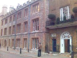 Ashburnham House houses the library[85] and the Mathematics Department,[86] and until 2005 accommodated the Economics, English and History of Art departments as well. Ashburnham House may have been built by Inigo Jones or his pupil John Webb around the time of the Restoration, as a London seat for the family, who became the Earls of Ashburnham. It incorporates remains of the mediaeval Prior's House. Its garden is the site of the monks' refectory and some of the earliest sittings of the House of Commons. In 1731 when Ashburnham housed the King's and Cottonian libraries, which form the basis of the British Library,[87] there was a disastrous fire, and many of the books and manuscripts still show the marks.[88] After the Public Schools Act 1868 there was a scandalous parliamentary and legal battle between the Dean and Chapter of Westminster Abbey and the School until the School eventually obtained Ashburnham House under the Act for £4,000. The dispute was reported in The Times and it was suggested by Thomas Wise, Secretary of The Society for the Protection of Ancient Buildings that the property was "in danger of being pulled down or of being virtually destroyed by being converted into a boarding-house in connexion with Westminster School", adding that the "house is admirably suited for a residence for the Dean or one of the Canons, and is totally unfitted for a school or a boarding house."[89] The school responded: "The Chapter themselves have in past years greatly altered and disfigured Ashburnham-house. It had originally two wings; one was destroyed and never restored. About 1848 the roof was taken off, a story added, and a dome in the ceiling of the drawing-room demolished, the external elevation being ruined. The house now has no beauty externally, and hardly any features of interest internally, except the staircase, which in any case would be preserved".[90] On 28 November William Morris also became involved in the campaign, writing a letter to the editor of The Daily News.[91] In the event, the school demolished the adjacent Turle's House and renovated sections of the east wing, but left the staircase and drawing room untouched.[92] During the Second World War, the library was used for military purposes and as an American officers' club, the Churchill Club.