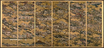 Rakuchū rakugai zu, a 16th century depiction of central Kyoto including Gion Matsuri floats (center) and Kiyomizu-dera (upper right)