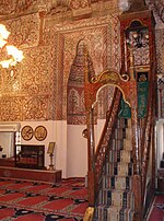 Minbar within richly decorated interior of Et'hem Bey Mosque, Tiranë.