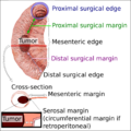 Edges and margins of an intestinal tumor