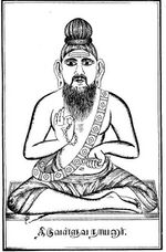 The first critical edition of the Tirukkaral based on manuscripts discovered in Hindu monasteries and private collections was published in 1861 by Arumuka Navalar – the Jaffna-born Tamil scholar and Shaivism activist.[221][222] Navalar, states Zvelebil, was "probably the greatest and most influential among the forerunners" in studying numerous versions and bringing out an edited split-sandhi version for the scholarship of the Kurral and many other historic Tamil texts in the 19th century.[222]