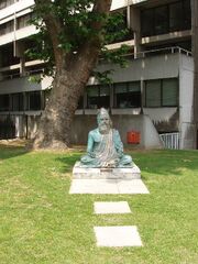 Statues of Valluvar have been erected across the globe, including the ones at Kanyakumari, Chennai, Bengaluru, Pondicherry, Vishakapatnam, Haridwar, Puttalam, Singapore, London and Taiwan.[286][287] The tallest of these is the 41-metre (133 ft) stone statue of Valluvar erected in 2000 atop a small island in the town of Kanyakumari on the southernmost tip of the Indian peninsula, at the confluence of the Bay of Bengal, the Arabian Sea, and the Indian Ocean.[288] This statue is currently India's 25th tallest. A life-size statue of Valluvar is one among an array of statues installed by the Tamil Nadu government on the stretch of the Marina Beach.[289]