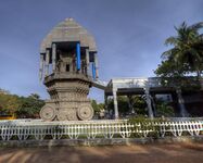 In 1976, Valluvar Kottam, a monument to honor the Kural literature and its author, was constructed in Chennai.[279] The chief element of the monument includes a 39-metre-high (128 ft) chariot, a replica of the chariot in the temple town of Thiruvarur, and it contains a life-size statue of Valluvar. Around the chariot's perimeter are marble plates inscribed with Tirukkuṟaḷ couplets.[279] All the 1,330 verses of the Kural text are inscribed on bas-relief in the corridors in the main hall.[285]