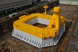 An open source project was proposed by former Siemens director Henrik Stiesdal in 2015 to be assessed by DNV GL. It suggests using tension leg platforms with replaceable pressurized tanks anchored to sheet walls.[156][157] Shell and Tepco are partners in the project, with the TetraSpar prototype[158][159] built in Grenaa and commissioned in Norway in December 2021[160] with a 65 meter draught in 200 meter water depth, using a 3.6 MW Siemens turbine.[24]