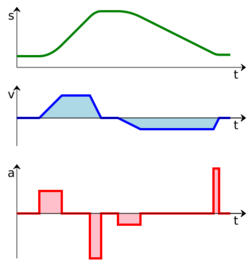 Likewise, the integral of the jerk function j(t), the derivative of the acceleration function, can be used to find the change of acceleration at a certain time: [math]\displaystyle{ \mathbf{\Delta a} = \int \mathbf{j} \, dt }[/math]