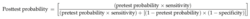 The post-test probability is a highly useful Bayesian equation that allows for the calculation of the probability that a condition is present when the test is positive, conditioned by the pretest prevalence of the condition of interest. This equation is given in box to the right: