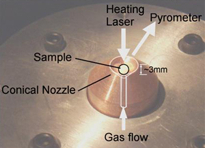 These systems allow spherical samples to be levitated by passing gas up through a diverging conical nozzle. Combining this with >200W continuous CO2 laser heating allows sample temperatures in excess of 3000 degrees Celsius to be achieved.