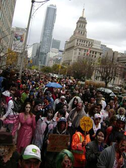 From Handwiki Zombie Awareness Month is a campaign to bring awareness about zombies and the possibility of a future zombie apocalypse.[1] The campaign was introduced and is predominantly funded by The Zombie Research Society (ZRS), an organization dedicated to the historic, cultural and scientific study of the living dead that was founded in 2007.[2] According to the ZRS, the main objective of Zombie Awareness Month is to educate people about causes, prevention and preparation for a supposed future zombie pandemic.