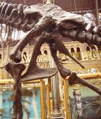 The tallest and heaviest dinosaur known from good skeletons is Giraffatitan brancai (previously classified as a species of Brachiosaurus). Its remains were discovered in Tanzania between 1907 and 1912. Bones from several similar-sized individuals were incorporated into the skeleton now mounted and on display at the Museum für Naturkunde in Berlin;[145] this mount is 12 meters (39 ft) tall and 21.8 to 22.5 meters (72 to 74 ft) long,[146][147] and would have belonged to an animal that weighed between 30000 and 60000 kilograms (70000 and 130000 lb). The longest complete dinosaur is the 27 meters (89 ft) long Diplodocus, which was discovered in Wyoming in the United States and displayed in Pittsburgh's Carnegie Museum of Natural History in 1907.[148] The longest dinosaur known from good fossil material is Patagotitan: the skeleton mount in the American Museum of Natural History in New York City is 37 meters (121 ft) long. The Museo Municipal Carmen Funes in Plaza Huincul, Argentina, has an Argentinosaurus reconstructed skeleton mount that is 39.7 meters (130 ft) long.[149]