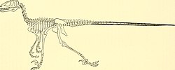 Less well-preserved remains of the sauropodomorphs Jaklapallisaurus and Nambalia, along with the early saurischian Alwalkeria, are known from the Upper Maleri and Lower Maleri Formations of India.[114] The Carnian-aged Chañares Formation of Argentina preserves primitive, dinosaur-like ornithodirans such as Lagosuchus and Lagerpeton in Argentina , making it another important site for understanding dinosaur evolution. These ornithodirans support the model of early dinosaurs as small, bipedal predators.[109][115] Dinosaurs may have appeared as early as the Anisian epoch of the Triassic, approximately 243 million years ago, which is the age of Nyasasaurus from the Manda Formation of Tanzania. However, its known fossils are too fragmentary to identify it as a dinosaur or only a close relative.[116] The referral of the Manda Formation to the Anisian is also uncertain. Regardless, dinosaurs existed alongside non-dinosaurian ornithodirans for a period of time, with estimates ranging from 5–10 million years[117] to 21 million years.[113]