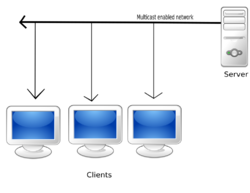 If the file is stored on a server for on-demand streaming and this stream is viewed by 1,000 people at the same time using a Unicast protocol, the requirement is 300 kbit/s × 1,000 = 300,000 kbit/s = 300 Mbit/s of bandwidth. This is equivalent to around 135 GB per hour. Using a multicast protocol the server sends out only a single stream that is common to all users. Therefore, such a stream would only use 300 kbit/s of server bandwidth.