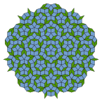 Penrose managed to create the most optimal solution for a non-periodical tiling. In the 1960s mathematician Hao Wang came up with a solution consisting of 20,426 different tiles. Then he reduced the number of tiles to 104. In 1968 Donald Knuth reduced it to 92 tiles. It was thought that it could not be reduced much more, but then Penrose took a look at it and reduced that number just to two. The pattern can be seen on the pavements in Oxford (outside the Maths Department at the University of Oxford), in Helsinki and on a wide wall of a building in San Francisco.[7][8] The tiling has many properties involving the golden ratio φ (1.618). It also resembles a tiling by Johannes Kepler in many ways.[9]