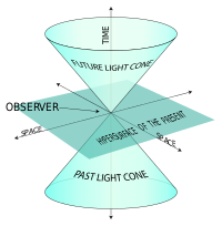 Penrose is also known from Penrose diagrams (which he always calls conformal diagrams). A Penrose diagram is an improved versions of classical spacetime diagrams. Their main advantage is that they manage to map all the values (from -infinity to +infinity) to a range between -π and π using trigonometrical functions. Hence, they allow representation of infinite time and space on a finite piece of paper making them very helpful in showing what happens around black holes.[11]