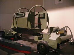 The Leopard was designed in 1974 by Ernest Konschel. It pre-dates and is similar in concept to the South African Buffel, but is smaller, and carried a driver on the front right, 2 passengers behind on the right, and three on the left. All passengers were on bench seats fixed to the hull facing in. It is powered by a Volkswagen Type 1 engine located in an un-armoured enclosure at the rear, behind the rear axle.