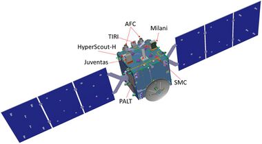 Hera has a mass of 1128 kilograms and carries a payload of cameras, an altimeter, and a spectrometer. It will also carry two nano-satellite CubeSats, called Milani and Juventas.