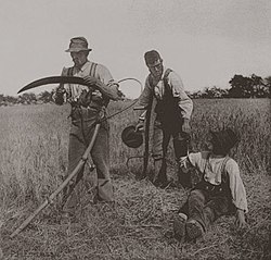 Traditional barley harvest by hand with scythes, England, c. 1886. Photo Peter Henry Emerson