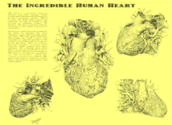 The heart is a muscular organ in most animals. This organ pumps blood through the blood vessels of the circulatory system.[1] The pumped blood carries oxygen and nutrients to the body, while carrying metabolic waste such as carbon dioxide to the lungs.[2] In humans, the heart is approximately the size of a closed fist and is located between the lungs, in the middle compartment of the chest, called the mediastinum.[3]