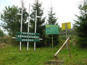 The Watershed continues in an eastern direction along the Jeseníky Mountains down to the Moravian Gate and uphill into the Beskids, with the Oder and Vistula basins in the north, reaching the triple point of Poland with Slovakia and Ukraine in the Bieszczady Mountains.[11] Then, the Watershed goes northeast near the Poland–Ukraine border, passes through the city of Lviv and, via Volyn, enters Belarus . Then it runs east-northeast along the Belarusian Ridge and continues to the Smolensk Oblast of Russia, ending at the triple point with the Caspian drainage basin in the Sychyovsky District, near the midpoint between the Western Russian cities of Smolensk and Tver.[12]