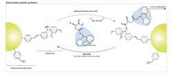 Short proteins can be synthesized chemically by a family of peptide synthesis methods. These rely on organic synthesis techniques such as chemical ligation to produce peptides in high yield.[50] Chemical synthesis allows for the introduction of non-natural amino acids into polypeptide chains, such as attachment of fluorescent probes to amino acid side chains.[51] These methods are useful in laboratory biochemistry and cell biology, though generally not for commercial applications. Chemical synthesis is inefficient for polypeptides longer than about 300 amino acids, and the synthesized proteins may not readily assume their native tertiary structure. Most chemical synthesis methods proceed from C-terminus to N-terminus, opposite the biological reaction.[52]