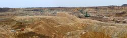Open pit amber mine in Kaliningrad, showing the lithology of the Prussian Formation, the source rock of Baltic amber