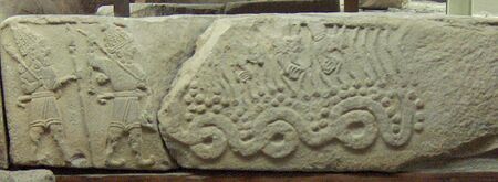 Template:Chaoskampf sidebarOne common myth found in nearly all Indo-European mythologies is a battle ending with a hero or god slaying a serpent or dragon of some sort.[250][251][252] Although the details of the story often vary widely, several features remain remarkably the same in all iterations. The protagonist of the story is usually a thunder-god, or a hero somehow associated with thunder.[109] His enemy the serpent is generally associated with water and depicted as multi-headed, or else "multiple" in some other way.[252] Indo-European myths often describe the creature as a "blocker of waters", and his many heads get eventually smashed by the thunder-god in an epic battle, releasing torrents of water that had previously been pent up.[253] The original legend may have symbolized the Chaoskampf, a clash between forces of order and chaos.[254] The dragon or serpent loses in every version of the story, although in some mythologies, such as the Norse Ragnarök myth, the hero or the god dies with his enemy during the confrontation.[255] Historian Bruce Lincoln has proposed that the dragon-slaying tale and the creation myth of *Trito killing the serpent *Ngʷhi may actually belong to the same original story.[256][257]