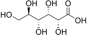 An aldonic acid is any of a family of sugar acids obtained by oxidation of the aldehyde functional group of an aldose to form a carboxylic acid functional group.[1] Thus, their general chemical formula is HOOC-(CHOH)n-CH2OH. Oxidation of the terminal hydroxyl group instead of the terminal aldehyde yields a uronic acid, while oxidation of both terminal ends yields an aldaric acid.