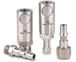 Also known as pneumatic couplings, quick disconnects, air couplers, quick connect couplers, and quick couplers, hand-operable air-line fittings allow manual disconnection of gas supply lines, including compressed air and breathable air (a subset of breathing gases). Most fittings do not have regional standardization but have become de facto standards through popular adoption.