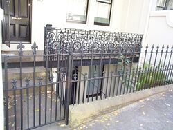 The term is most commonly applied to urban houses of the Georgian period in the UK, where it was normal for the service rooms, such as the kitchen, scullery and laundry, to be in the basement. Areas were commonly enclosed for safety reasons by wrought iron or cast iron railings, which became one of the principal decorative features of the astylar terraced houses of this period. Areas are also found in the English and French country house, where basements were popular in the 18th century as a way of accommodating service functions while allowing all four faces of a symmetrical Classical building to relate directly to its landscape setting, as at Mereworth Castle in Kent or The Abbey in Cumbria. Basements, and consequently areas, decreased in popularity in the 19th century, as attitudes to servants changed, although they continued to be constructed as service accommodation in urban settings where land was at a premium until the early 20th century. A suburban residential application can be seen at the Gamble House in Pasadena, California, to light the laundry and service areas of the expansive basement.