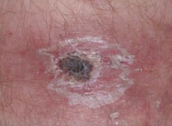 ↑Rapini, Ronald P.; Bolognia, Jean L.; Jorizzo, Joseph L. (2007). Dermatology: 2-Volume Set. St. Louis: Mosby. pp. 1130. ISBN 978-1-4160-2999-1.