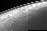 The limb of Mars with Secchi crater in center foreground, and part of the Hellas basin in far left distance