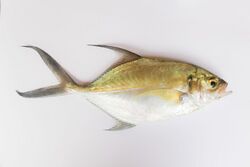 The species was first scientifically described by the famed French naturalist Georges Cuvier in 1833 based on a specimen taken from the mouth of the Senegal River at Gorée, Senegal, which was designated to be the holotype.[3] Cuvier named the new species Caranx senegallus with the specific epithet referring to the country the holotype was taken from. The species was independently redescribed twice; both times by the Austrian zoologist Franz Steindachner. In 1867 he named the species Caranx macrops,[4] while in 1883 he named it Caranx africanus, with no apparent reason for the redescription.[5] Under ICZN naming rules, these are both considered junior synonyms and rendered invalid. The species' two common names simply refer to the African coasts where the species is found.[6]