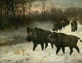 The forest floor was prolific with larger browsers and rooters such as the red deer, roe deer, and wild boar. Not all the former plains mammals had abandoned the country. They remained in the open forest and meadows. These include the aurochs, ancestor of cattle, and the wild horse which, as a discovery, was something of a revelation. The horses were not entirely hunted out, were not confined to the plains further east, and were not entirely the property of the Indo-European cultures there. The Mesolithic Ertebølle people were hunting them in Denmark.[6]