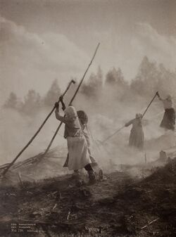 Along the line of the Danube and the Rhine, extending northward in tributary drainage systems, a new factor entered the forest country: the Linear Pottery culture, clearing the arable land by slash and burn methods. It flourished about 5500–4500 BC, falling entirely within the Atlantic. By the end of the Atlantic, agricultural and pasture lands extended over much of Europe and the once virgin forests were contained within refugia. The end of the Atlantic is signaled by the "Elm decline", a sharp drop in Elm pollen, thought to be the result of climate, disease or human food-producing activities.[5] In the subsequent cooler Sub-Boreal, forested country gave way to open range once more.
