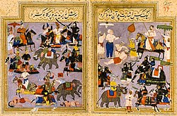 Muslim period in the Indian subcontinent (712–1757) is conventionally said to have started in 712, after the conquest of Sindh and Multan by the Umayyad Caliphate under the military command of Muhammad ibn al-Qasim.[1] It began in the Indian subcontinent in the course of a gradual conquest. The perfunctory rule by the Ghaznavids in Punjab was followed by Ghurids, and Sultan Muhammad of Ghor (r. 1173–1206) is generally credited with laying the foundation of Muslim rule in Northern India.