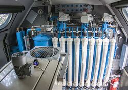 Some water treatment plants employ pressure filters. These work on the same principle as rapid gravity filters, differing in that the filter medium is enclosed in a steel vessel and the water is forced through it under pressure.