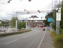 The congestion tax is being introduced at the access and exit ramps of two interchanges on Essingeleden in order to reduce traffic jams in peak periods, and with shorter traffic jams on Essingeleden, the surrounding roads are expected to have shorter tailbacks. The transport agencies involved expected to reduce traffic on Essingeleden by some 10% in peak hours.[68] One week after the tax began to be charged, traffic on the motorway had decreased by 22% compared to a normal day in mid-December.[69]