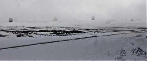 The facility consists of a 600-square-meter (6,500 sq ft) main operations building, a 70-square-meter (750 sq ft) building for the emergency power supply, a transformer station, and a mobile research station, in addition to the radomes.[13] The lot is located above Store Norske Spitsbergen Kulkompani's Mine 3 and is leased to KSAT. The facility is connected to Longyearbyen via a 3.5-kilometer (2.2 mi) long private road. When the road is closed because of avalanches and land slides, helicopter transport is used. There is a road connecting all the antennas to ease maintenance.[13] Installations at SvalSat not related to satellite communication include a measuring station for radioactive particles in the air operated by Norwegian Seismic Array, a telecommunications installation operated by Telenor, a weather station operated by the Norwegian Meteorological Institute, with information relayed to Svalbard Airport, Longyear, and a weather station operated by SvalSat.[13]